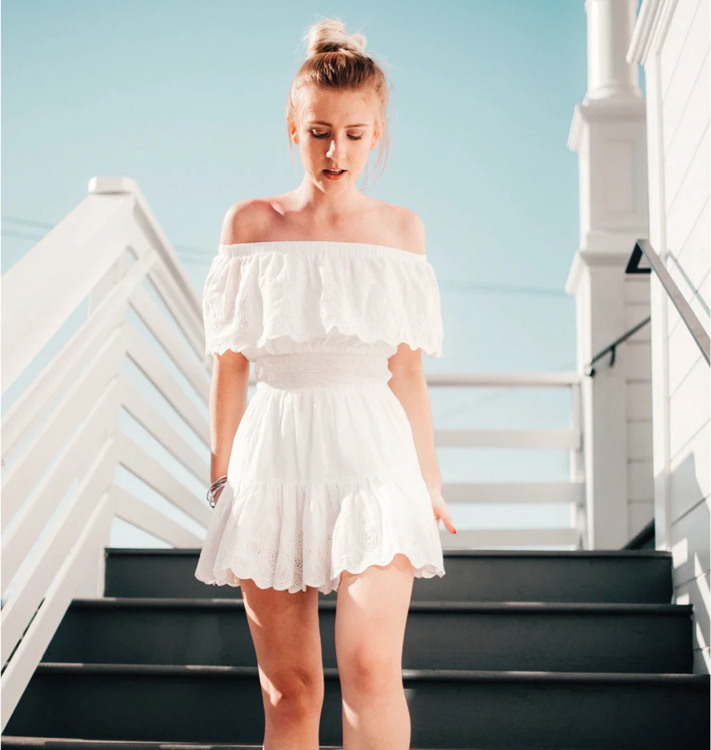 White off-shoulder beach dress